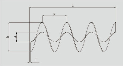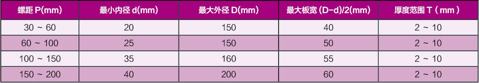 2、 連續(xù)等厚技術生產(chǎn)的螺旋葉片與連軋技術生產(chǎn)的螺旋葉片一樣為多螺距的連續(xù)形態(tài),其特點是成型精度高,外沿厚度與內(nèi)孔厚度一致。