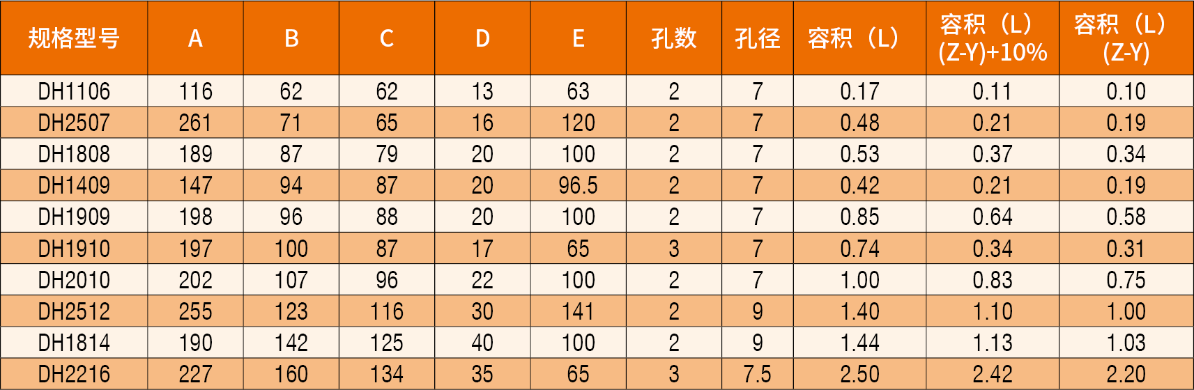 備注:上述DH斗安裝孔處均為凹孔或帶凸臺(DH1814除外),故孔距及孔徑均不可調(diào)整