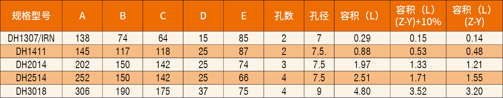 備注:上述四個規(guī)格DH1411~3018斗為國外用戶特殊定制,安裝孔處均帶凸臺(DH1307/IRN除外),故孔距及孔徑均不可調(diào)整。