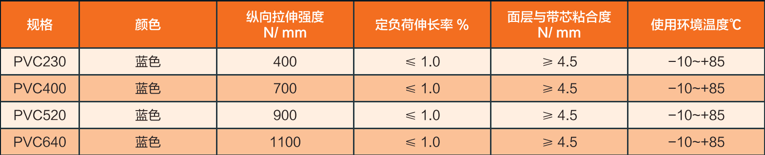 4、帶體上下表面均為毛面,有良好的過(guò)輥性能,能保持較好的運(yùn)行軌跡,不易跑偏。