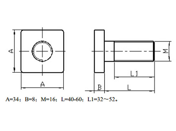 2、 方頭螺栓M16X40,M16X60為標(biāo)準(zhǔn)配置,如需加長須訂制。